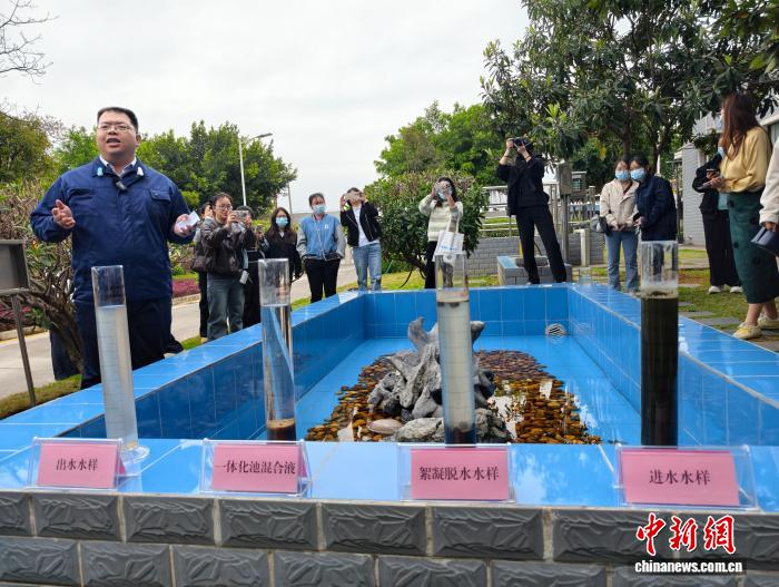 图为公众正在死化处置厂领会粪就浑水有害化处置的完备淌程。林馨 摄 “20年前那里是个渣滓挖埋场,渣滓堆成山,蚊蝇随处治飞。通过启场复绿后,成为绿树成荫、柳绿桃